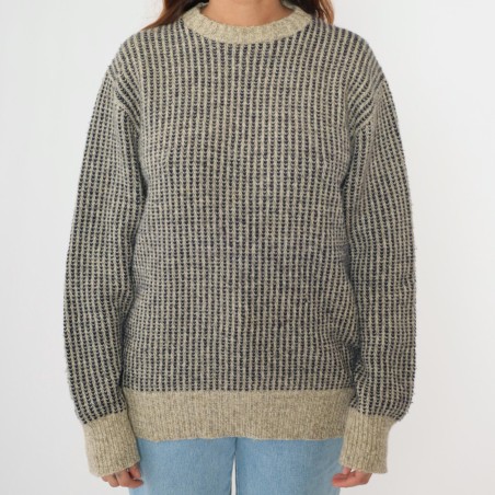 This grey knit sweater is a minimalist staple with elevated texture. The body features a dense, vertical contrast stitch pattern that creates a refined, woven-like look, while the solid ribbed neckline, cuffs, and hem add structure and a clean finish. With an easy, relaxed silhouette and long sleeves, it’s the kind of piece that looks polished with denim yet feels comfortably cozy for everyday wear.