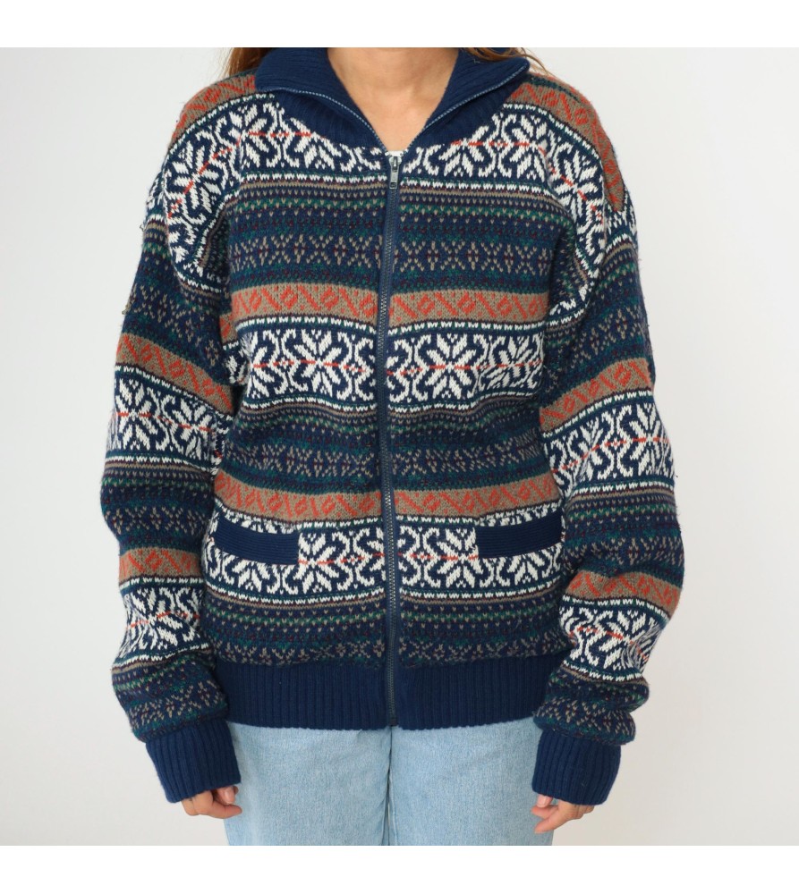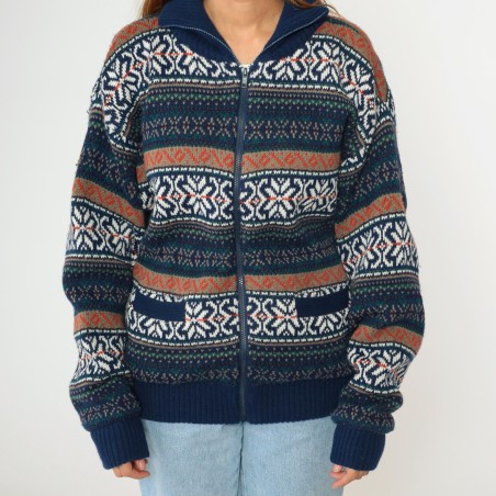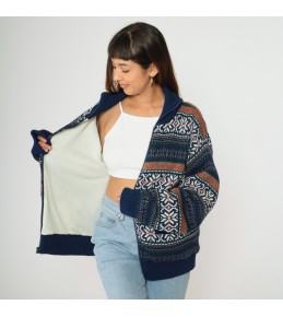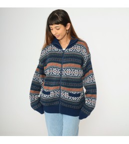 Navy Fair Isle Zip-Up Knit Cardigan