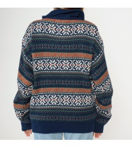 This zip-up knit cardigan combines the warmth of a sweater with the practicality of a jacket. Featuring an all-over Fair Isle–inspired pattern in navy, cream, forest green, and warm rust accents, it delivers a classic winter look with rich visual texture. The full-length zipper and high stand collar make it easy to layer and adjust for temperature, while ribbed trim at the cuffs and hem keeps the fit neat and comfortable.